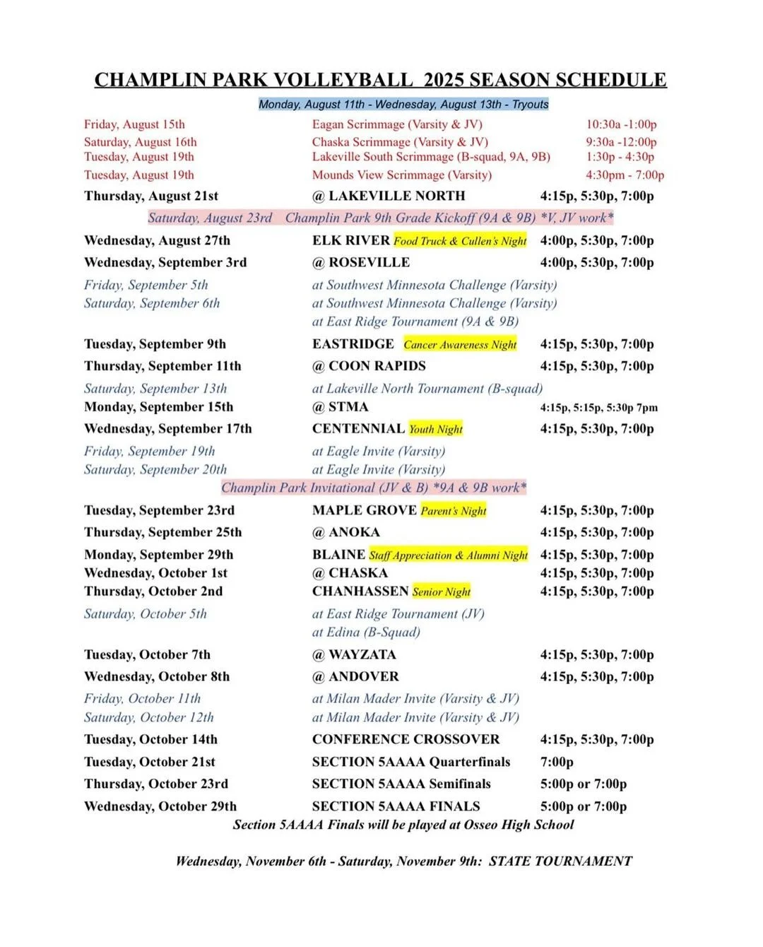schedule - all teams 2026 Varsity ScheduleCheck back late Summer 2026 for the upcoming schedule 2025 Varsity Schedule View fullsize